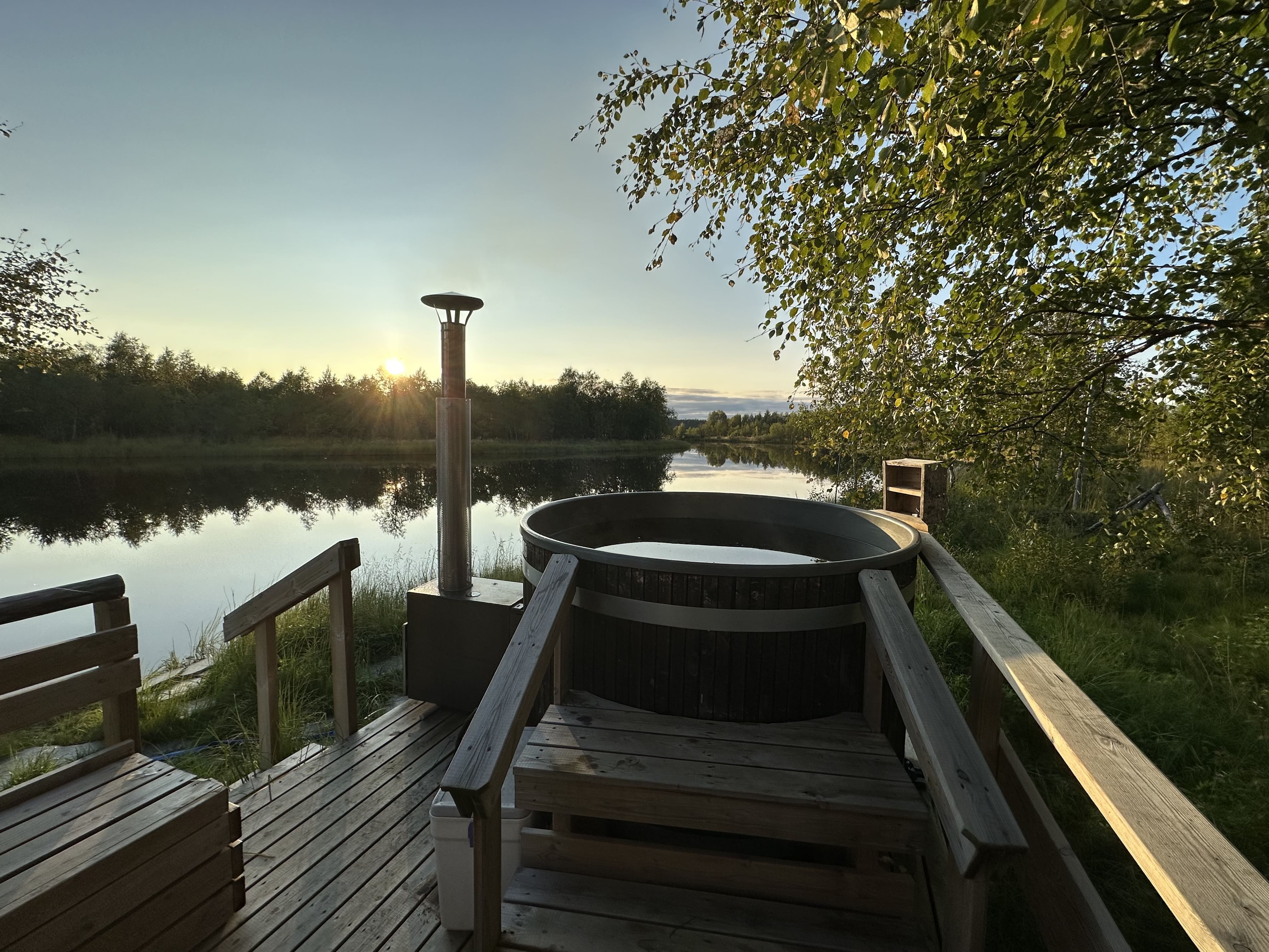 Experience outdoor Hot Tub and traditional finnish Sauna on a island in Ivalo River. Try your fishing luck and enjoy BBQ in beautifull surroundings.